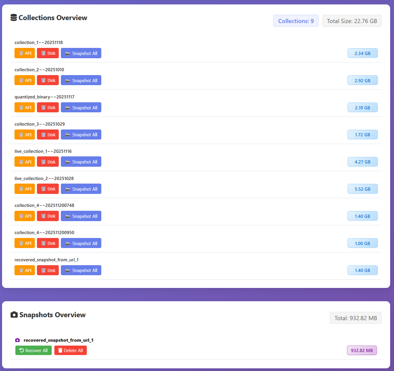 Versioned collections are read-only. They are created, uploaded, indexed, and then no points are added throughout the whole collection lifetime. To make version transition for customer as seamless as possible we utilize an amazing qdrant feature – collection aliases. Each versioned collection name looks like this : public_collection_name~~collection_version , but for the customers the collection is provided under public_collection_name alias.
