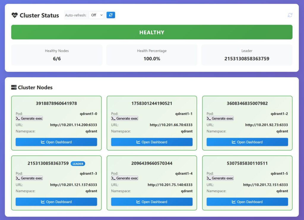 So you want your own distributed qdrant cluster, and the perfect place to start is the official qdrant helm chart https://github.com/qdrant/qdrant-helm. It’s perfectly enough to get you up and running, although I found that the support for the recovery mode was limited at the time, so it was added.
