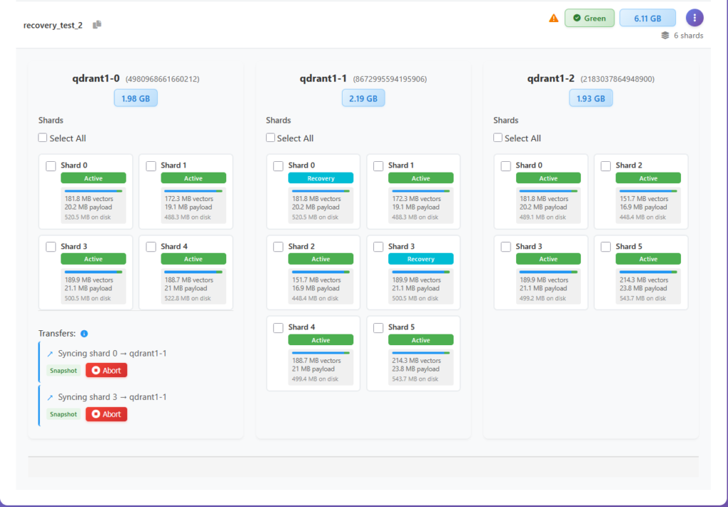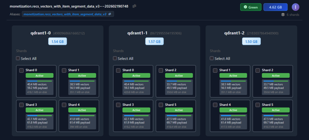 - Shard number – corresponding to Qdrant internal shard identifiers.